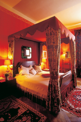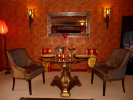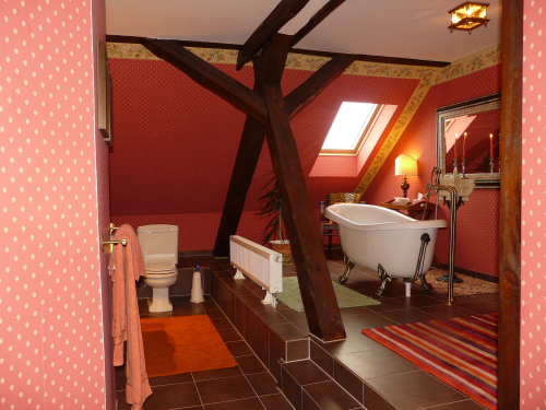 Englische und französische Tapeten, Stuck, 2 Kamine, Whirlpools, Himmelbetten, teilweise Antiquitäten.
